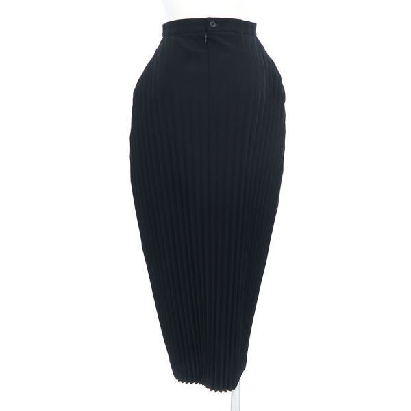 ■コメントイッセイ・ミヤケより黒のプリーツスカートが入荷いたしました。細めのデザインでウエスト部分伸縮はあまりありません。ヒップ部分に微かな毛玉があり、着用感が見受けられますが、通常使用は可能かと思われます。お気軽にお問い合わせくださいませ。