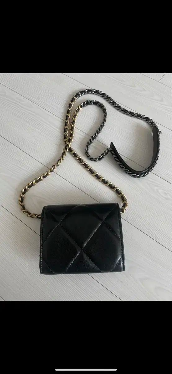 ブラックカラーに金とシルバーのチェーンがアクセントになって、より洗練された印象に。シャネルならではの品質が際立ち、チェーンディテールが高級感を醸し出しています。