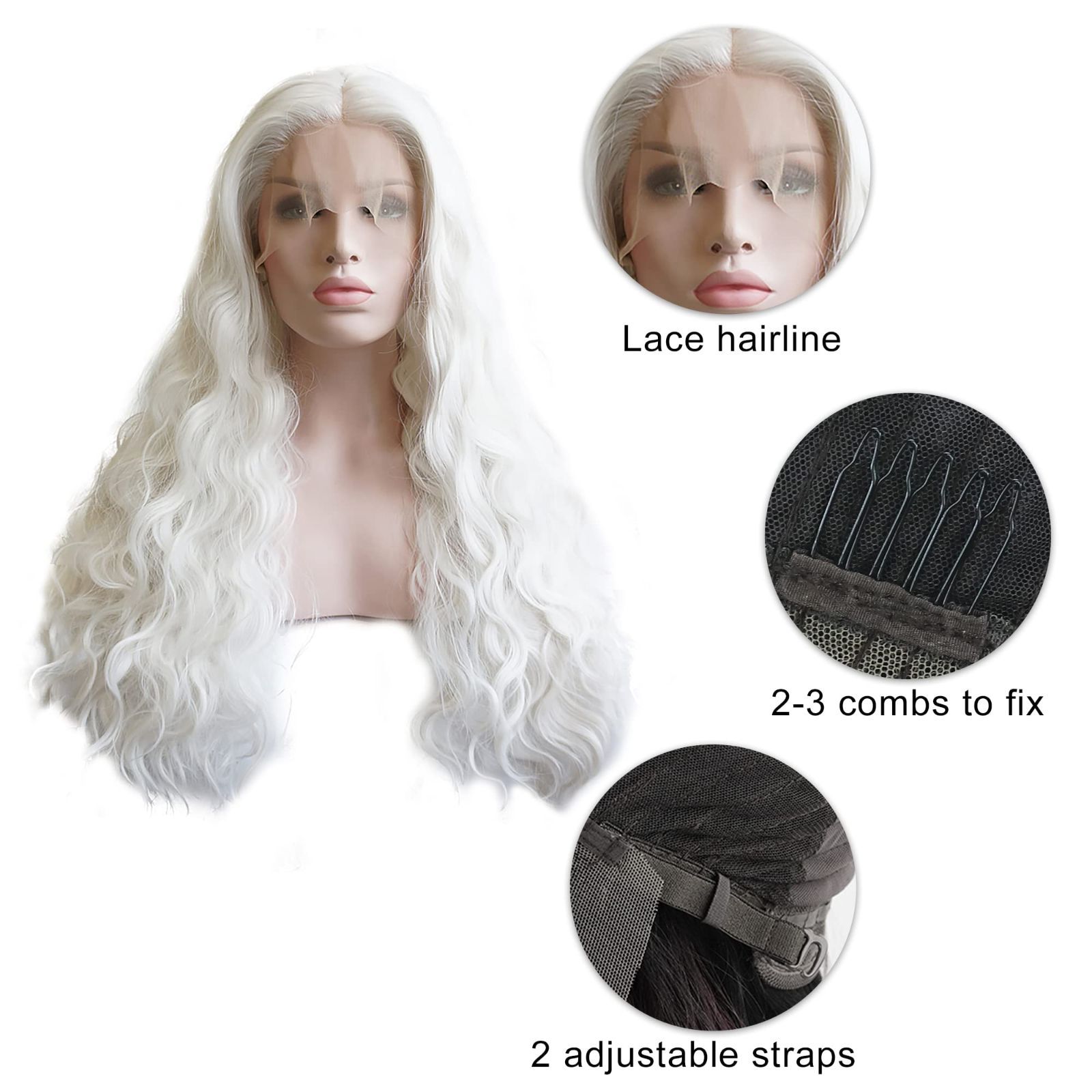 VOCOSTE レースフロントウィッグ 耐熱性 ロング ふわふわ カーリー ウェーブのかかった 女の子用 日常使用 合成繊維 61cm ホワイト
