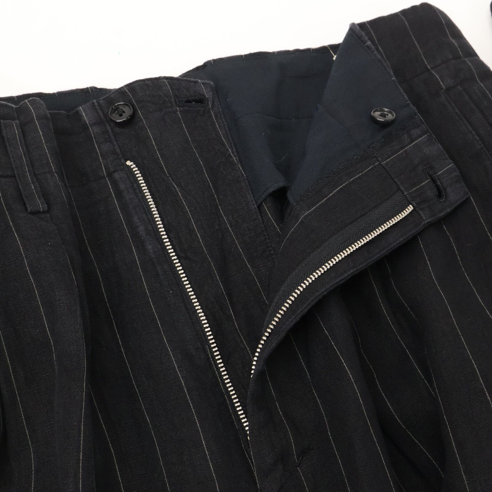 Yohji Yamamoto POUR HOMME ヨウジヤマモトプールオム 黒 ストライプ リネン スーツ セットアップ ジャケット S ボトムス M