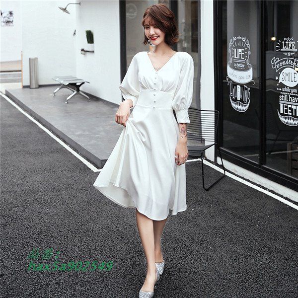 Vネック 発表会ドレス 白 演奏会用ドレス ロングドレス 結婚式 フォーマルドレス 二次会 ワンピース 女子会 パーティードレス hax 5 a 902549
