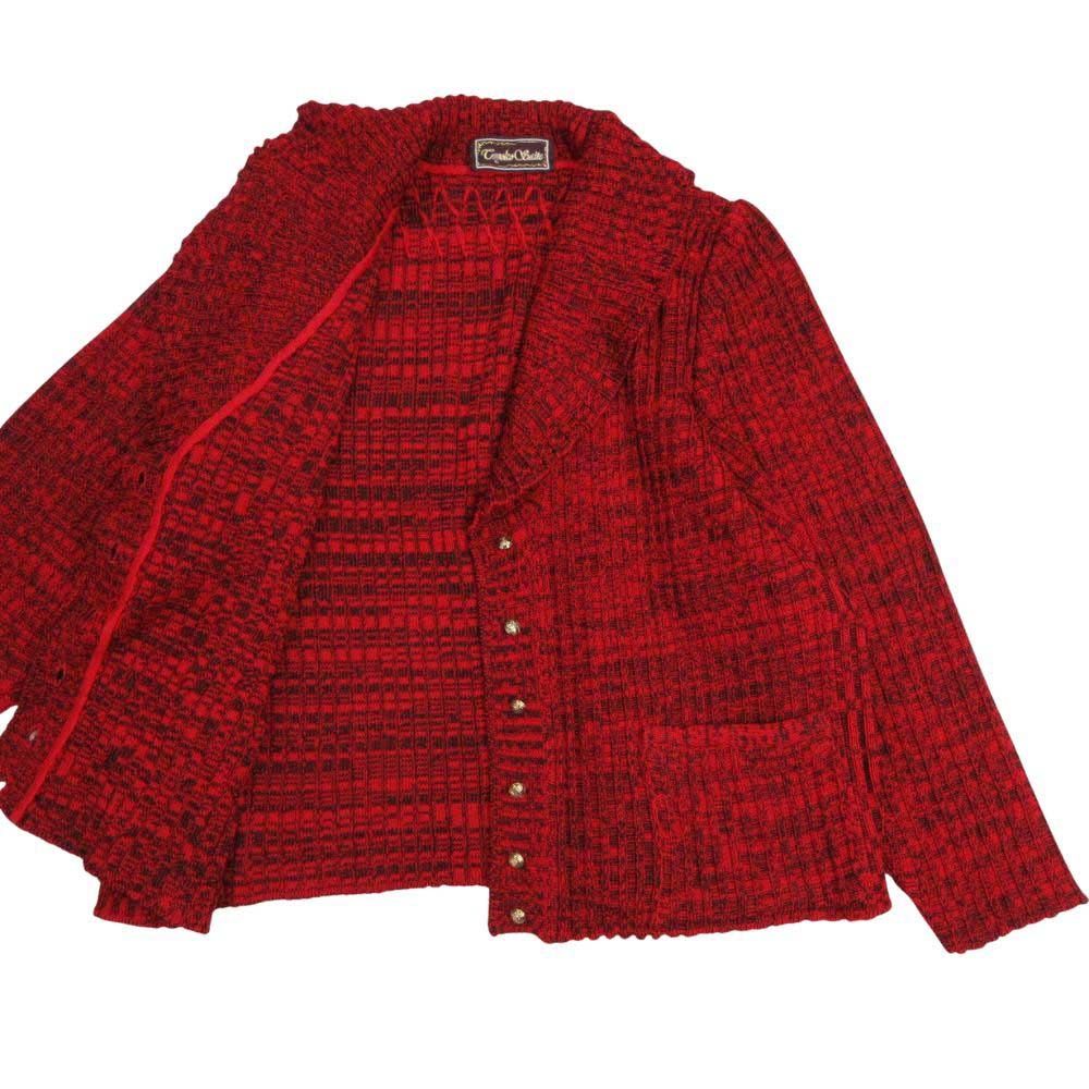 トヨコサイトウ 斎藤都世子 リブニット セットアップ ショールカラー ジャケット フ スカート ロング 赤 レッド レディース 古着