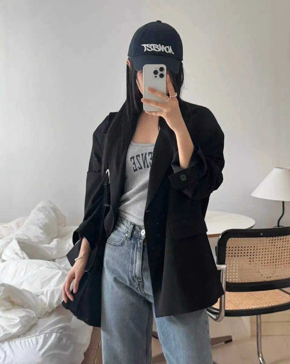 家で一度しか試着したことがないので、オーバーサイズは普通は合わないけど、スジュンの服に惚れて買ってアップロードしました ?