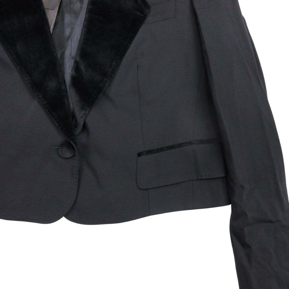 ♥ DOLCE-GABBANA ドルチェアンドガッバーナ ウール ベロア 1 B クロップド テーラードジャケット 42 黒 ブラック レディース 古着