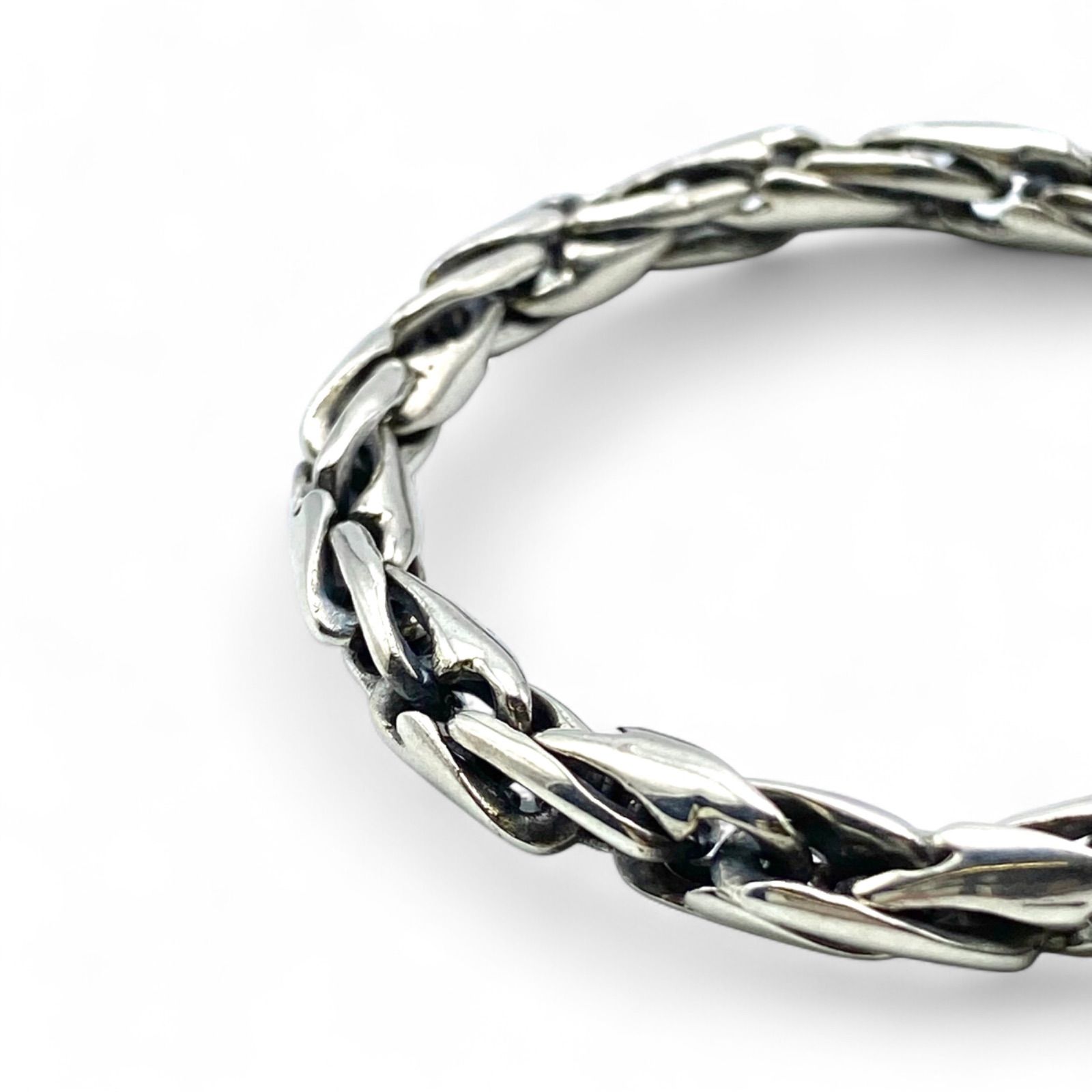 細やかに編み込まれたチェーンが印象的なシルバー925製ブレスレット。しなやかな動きと光沢感が手首を美しく飾り、洗練されたスタイルを演出します。上品さと存在感を兼ね備えた万能アイテムです。