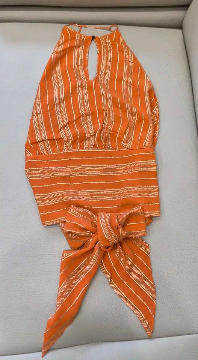 オレンジセリーヌホルターネックノースリーブトップ。