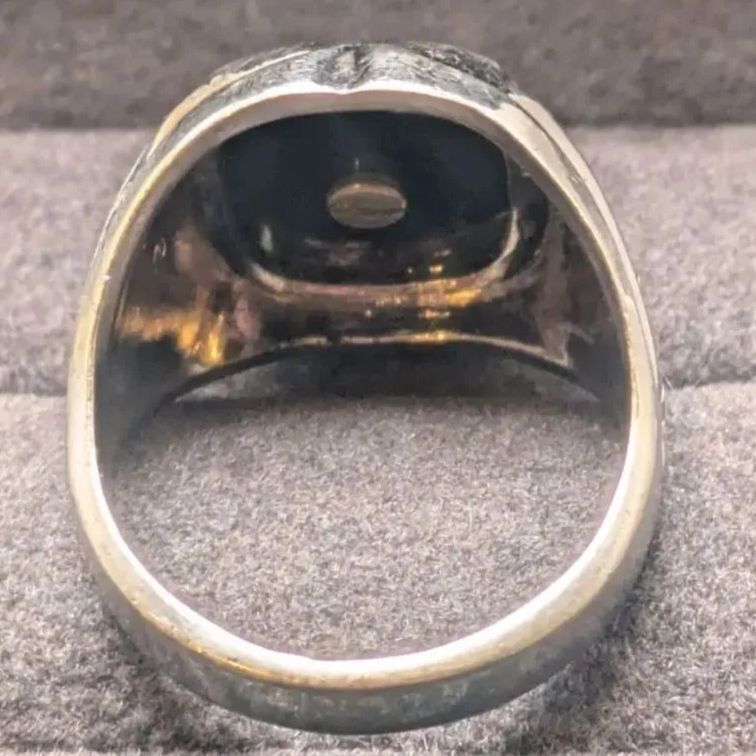 18 K ホワイトゴールド HGE メッキ B イニシャル リング ヴィンテージ 1点物 18金 19号 黒 ブラック 米国 アメリカ US 存在感 重厚感