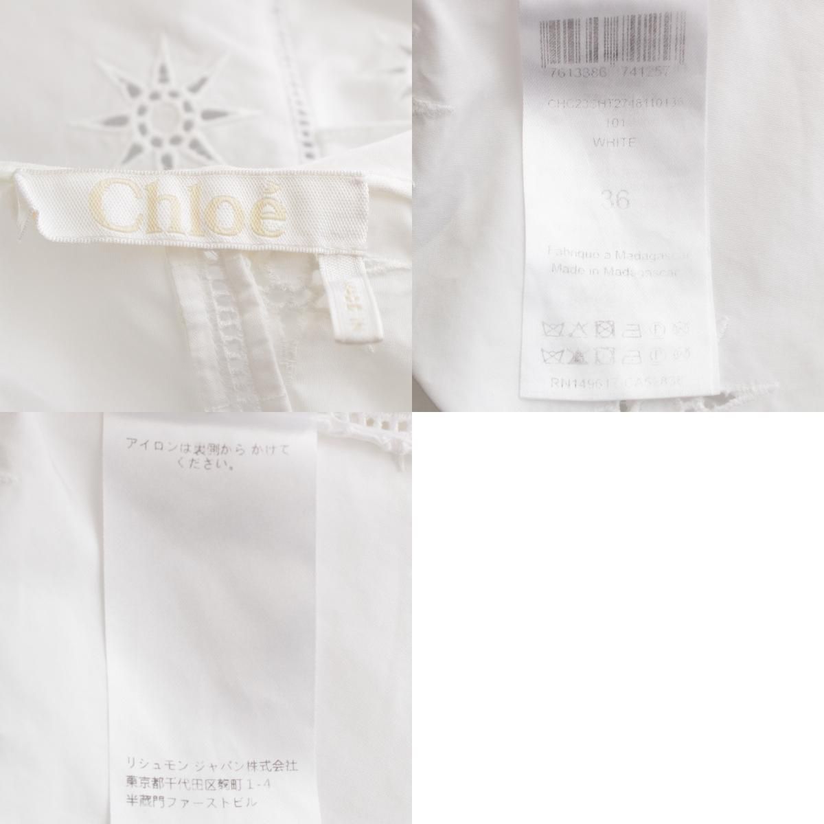 クロエ 23年 ラッフル アングレーズ イギリス刺繍 ブラウス 半袖 トップス ホワイト 36