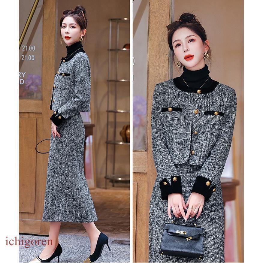 ツイードスーツ セットアップ スーツジャケット ロングスカート スリット入り 大人 きれいめ 入園式 エレガント 上品 おしゃれ 入学式 卒業 今週 ZZ 520