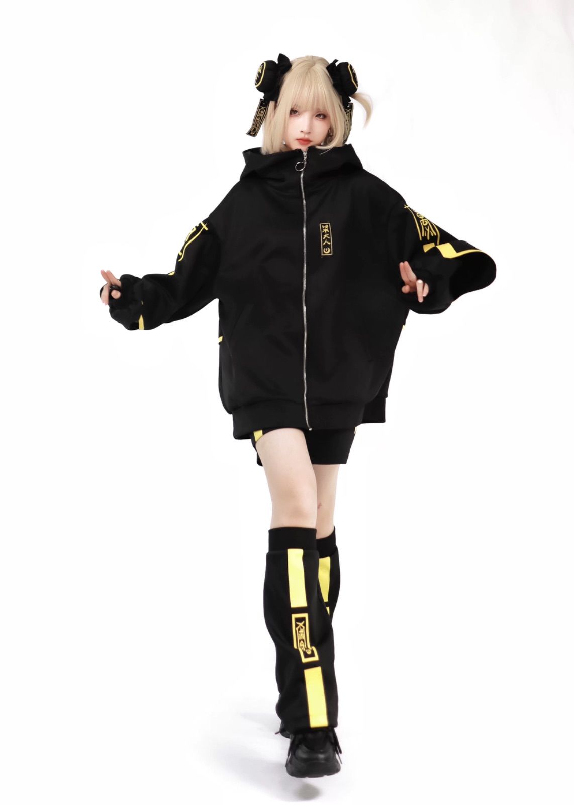サブカル 服 渦雷系 オーバーサイズ 大きめ ゆったり 原宿 渋谷 10代 ファッション ジャージ パーカー イエロー ブラック コスプレ 地雷系 量産型 サイバー系 y 3 k 病みかわ セットアップ トップス 長袖