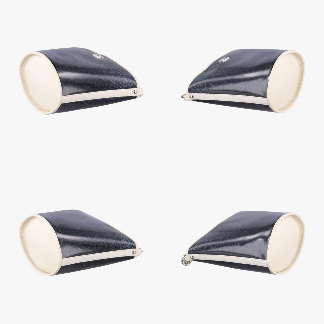 シャネルChanelココマーク カメリア ビニール バスケットブラック×ホワイトPVCコーティングキャンバス