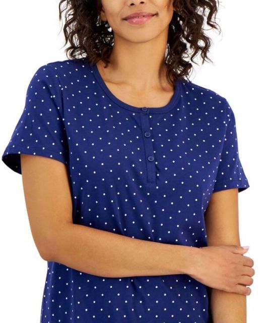 チャータークラブ レディース ナイトウェア アンダーウェア Women s Cotton Printed Henley Sleepshirt XS-3 X Polka Dots