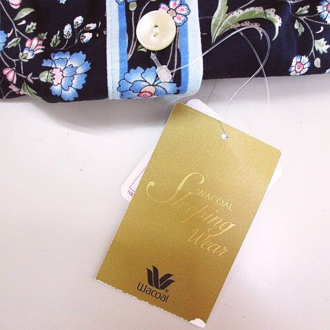 【商品名】ワコール ナイトウェア パジャマ セットアップ L 紺系 ネイビー ボタン 花柄 小鳥 ウエストゴム 日本製 タグ付
