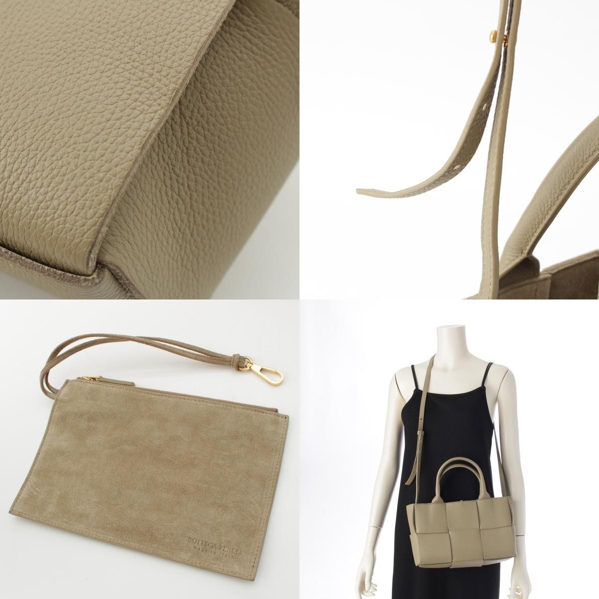 ボッテガヴェネタ ザ アルコ レザー マキシイントレチャート ポーチ付き 2 WAY ショルダー ハンドバッグ 652867 ベージュ
