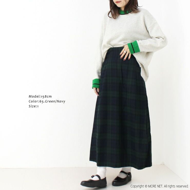50%OFF ナル NARU リサイクルウールクロスチェックハイウエストスカート 656937 ボトムス ブロックチェック ロング丈 日本製 レディース 交換不可