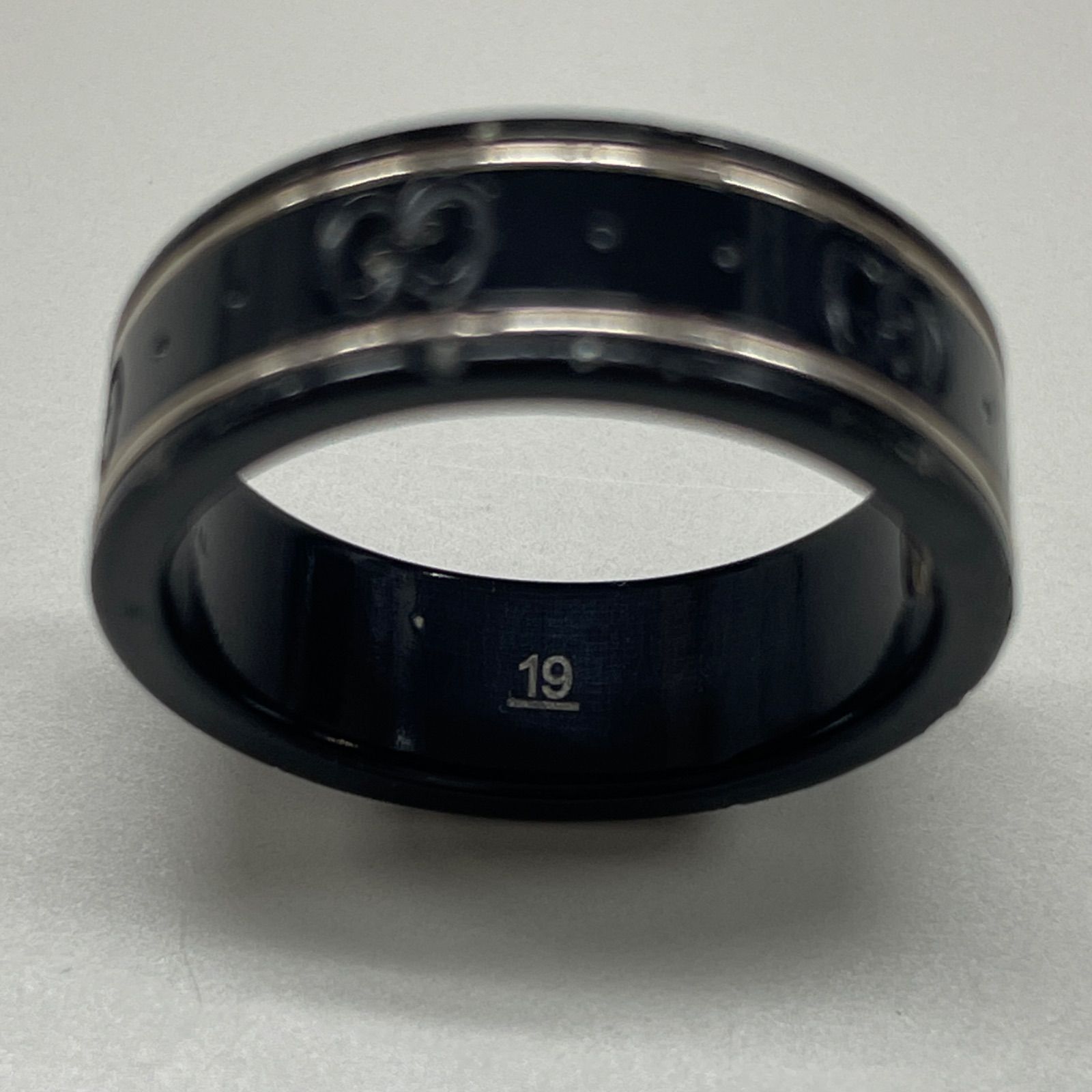 GUCCI アイコンGG シンバンド K 18ホワイトゴールド × コランダム リング 指輪 グッチ ブラック系 19号 273 M 3