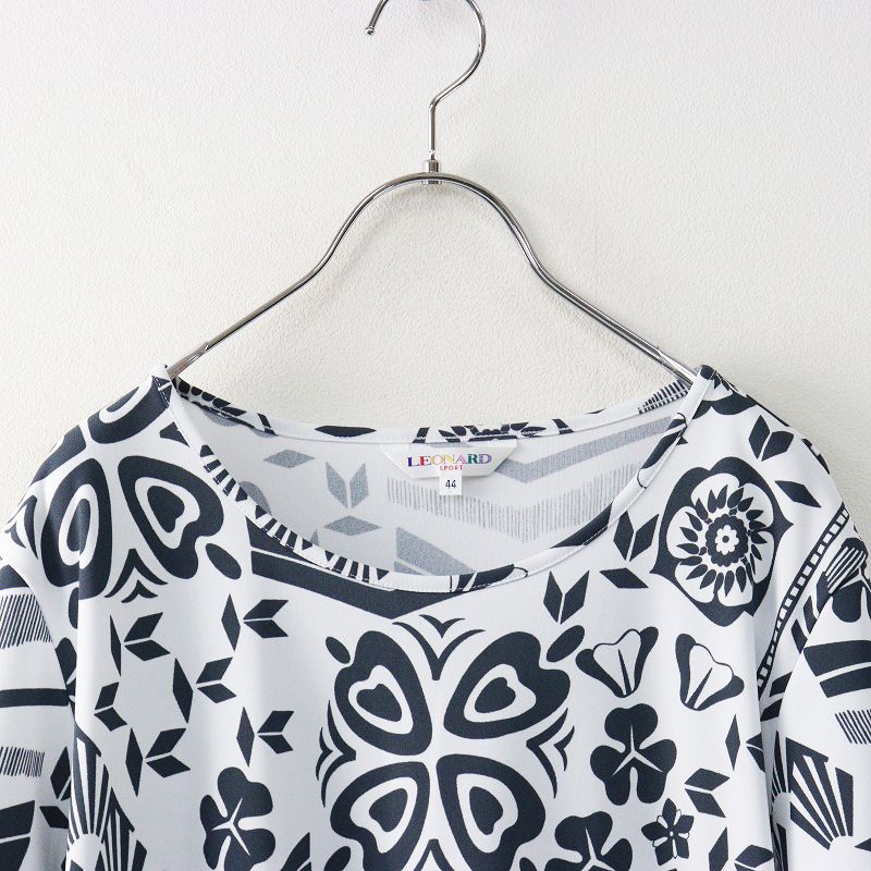 【品名】美品 大きいサイズ レオナール スポーツ LEONARD SPORT モノトーンフラワープリント ジャージーTシャツ 44 ホワイト┃