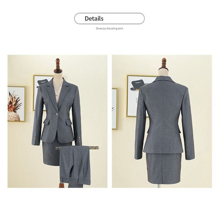 【カラー】typeA-ネイビー(パンツスーツ)、typeB-グレー(パンツスーツ)、typeC-ブルー(スカートスーツ)、typeD-杏色(スカートスーツ)