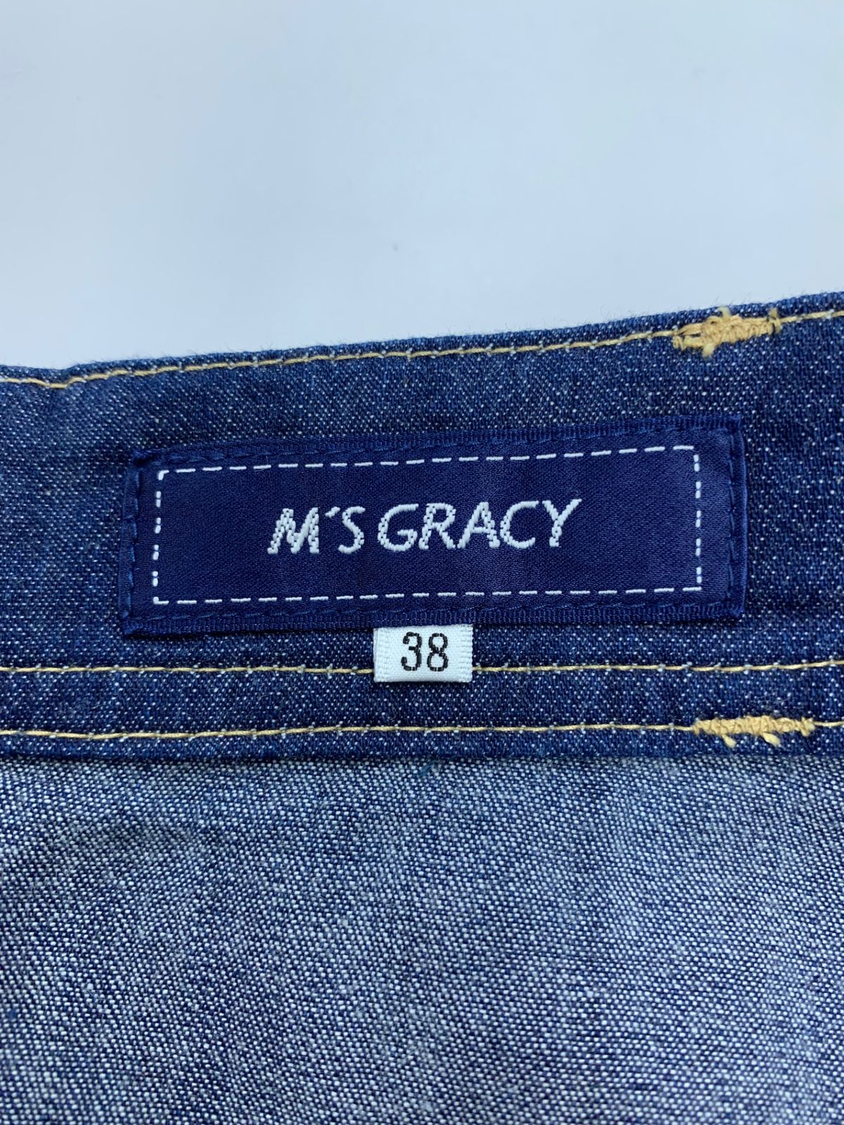 エムズグレイシー パールスタッズ付きデニムスカート 417611 38 ネイビー