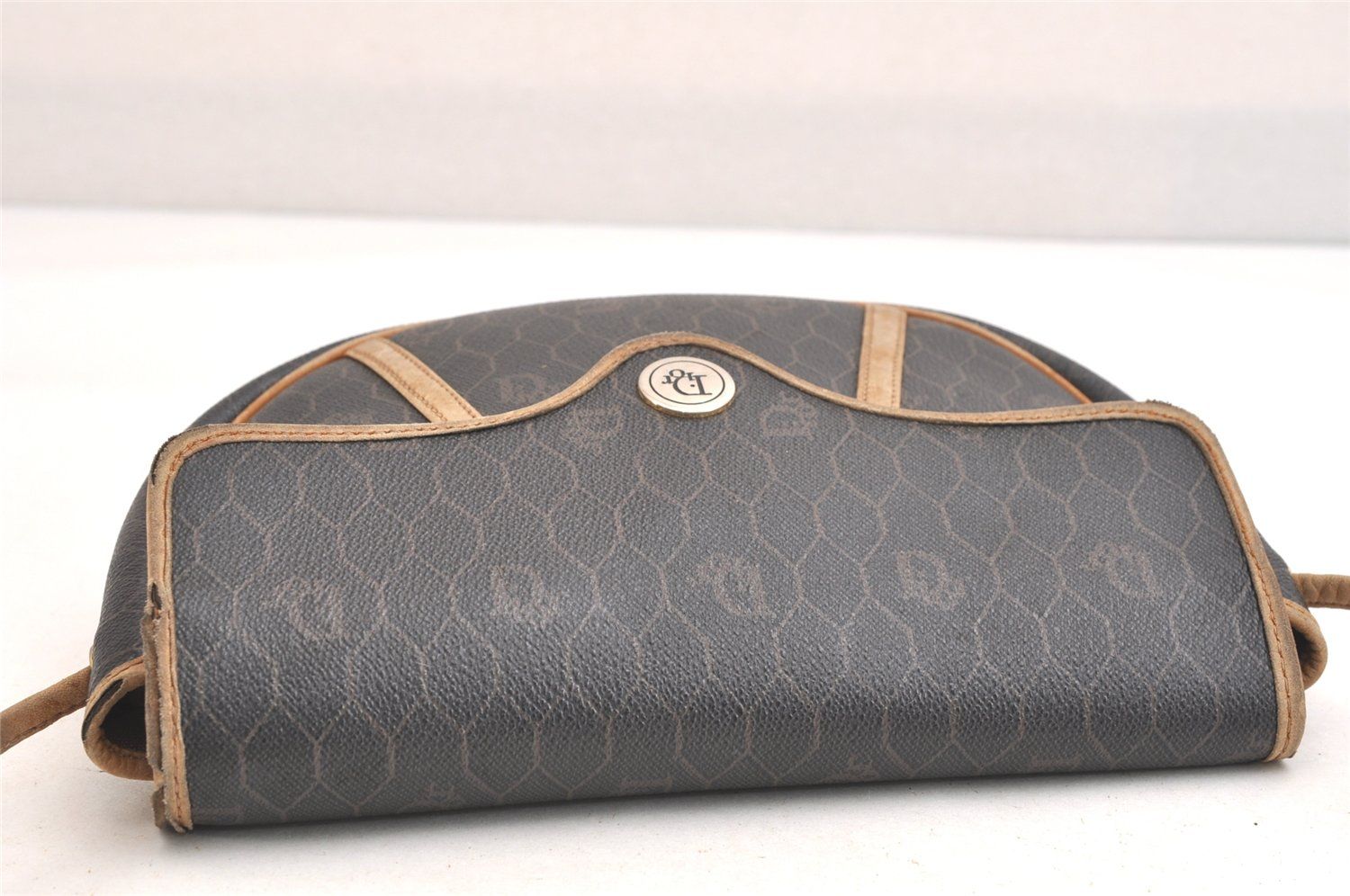 Christian Dior ディオール ハニカム柄 ショルダーバッグ 財布 ピーブイシー レザー ブラック 2449 N