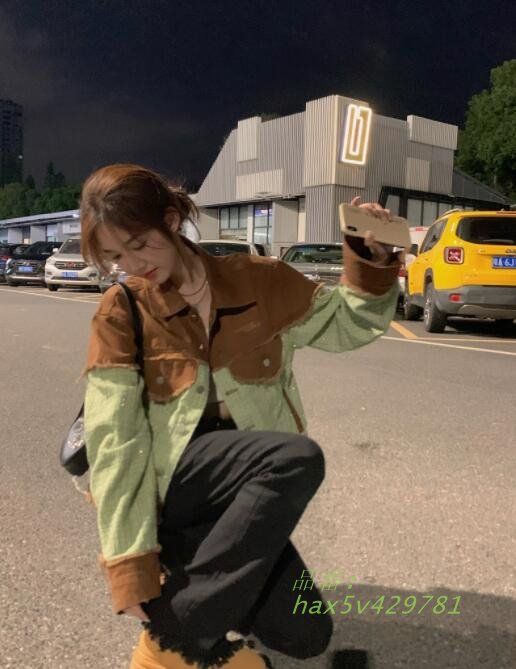 切替 異素材 デニム ジャケット ジージャン 韓国 HIPHOP レディース 原宿系 ダンス衣装 Y 2 K オルチャン ストリート hax 5 v 429781