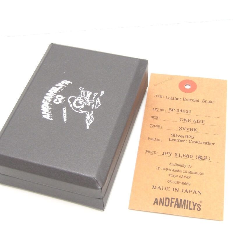 アンドファミリー レザーブレスレット SP-24031 Leather Bracelet Snake ブラック スネーク ヴィンテージ加工
