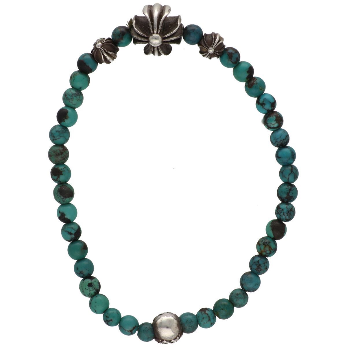CHROME HEARTS クロムハーツ 4 mm ビーズブレスレット ターコイズ SV 925 シルバー グリーン ブルー クロスボール RS