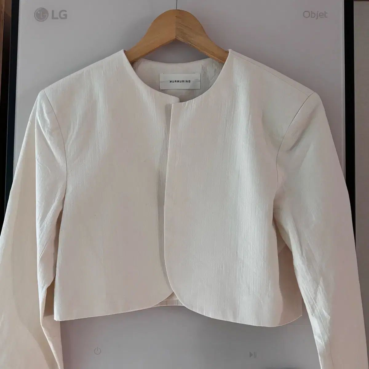 タグ murmuring つぶやく ノーカラー クロップド コットン ラウンド ジャケット アイボリー