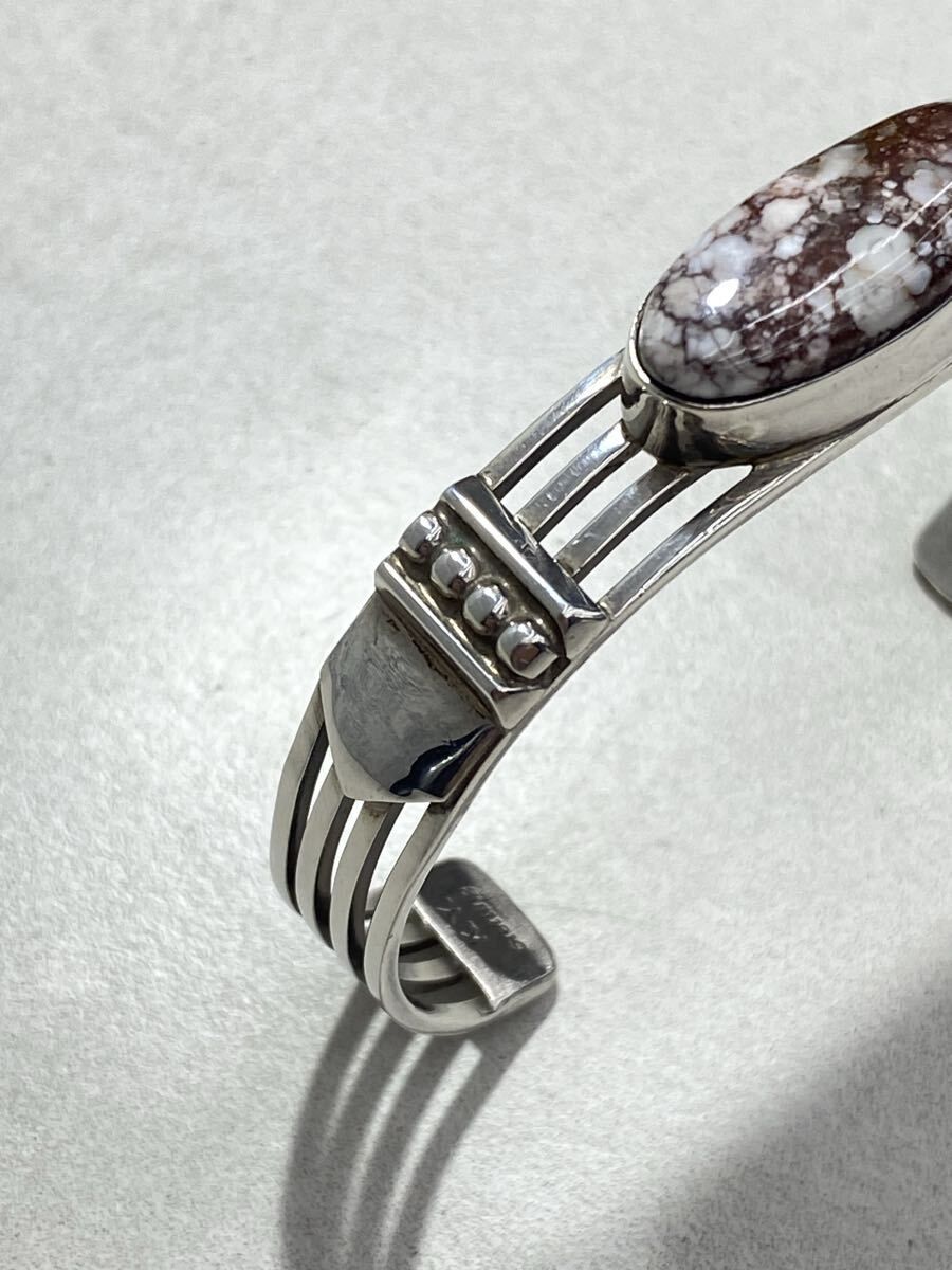 ナバホ族 Kay Yazzie ケイ ヤジー ワイルドホース シルバー バングル ブレスレット インディアンジュエリー 925本です。