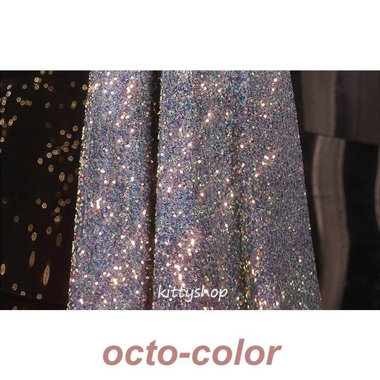 ?♥ イブニングドレス スパンコール フ 半袖 オフショルダー 肩出し キラキラドレス キレイめ オシャレ 感 パーティー