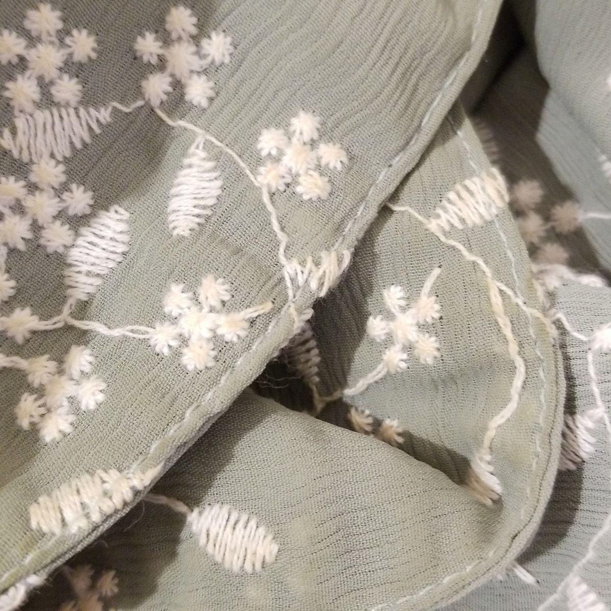 CLANE クラネ ワンピース サイズ0 XS レディース - ライトグリーン×アイボリー ハイネック|長袖|ロング|刺繍|フラワー 花