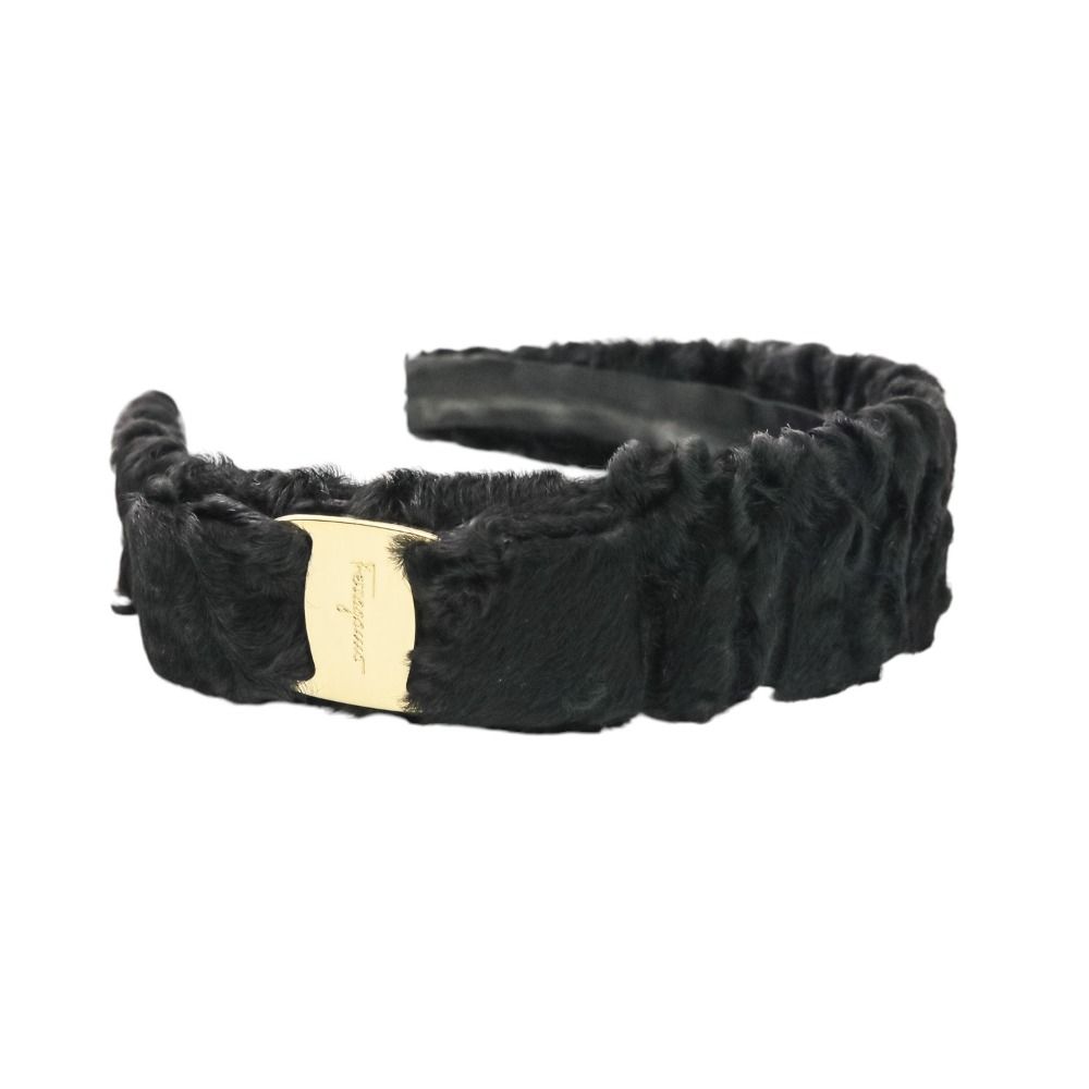 【商品名】Salvatore Ferragamo サルヴァトーレフェラガモ ヴァラリボン ラムファー カチューシャ ブラック
