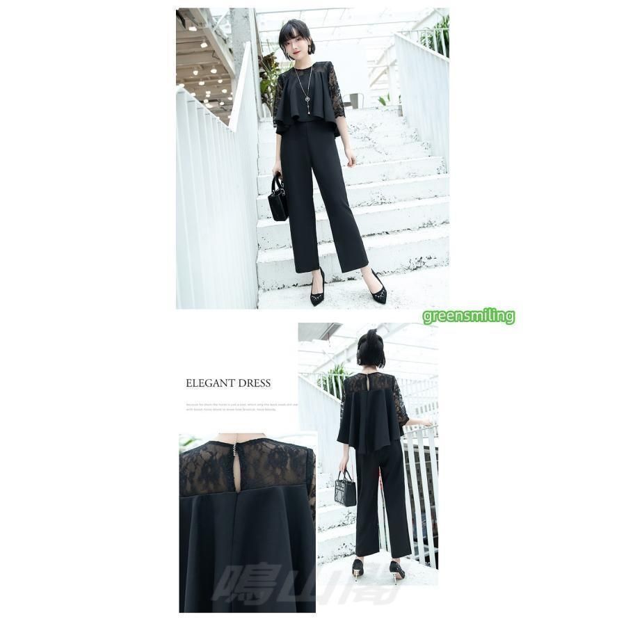 セレモニースーツ レディース 七分袖 セットアップ 上下セット トップス ボトムス パンツドレス 礼服 体型カバー 大きいサイズ 40代 50代 袖あり 演奏会 韓国 母 卒園式 入園式 服装 母親 結婚式 k8001lc