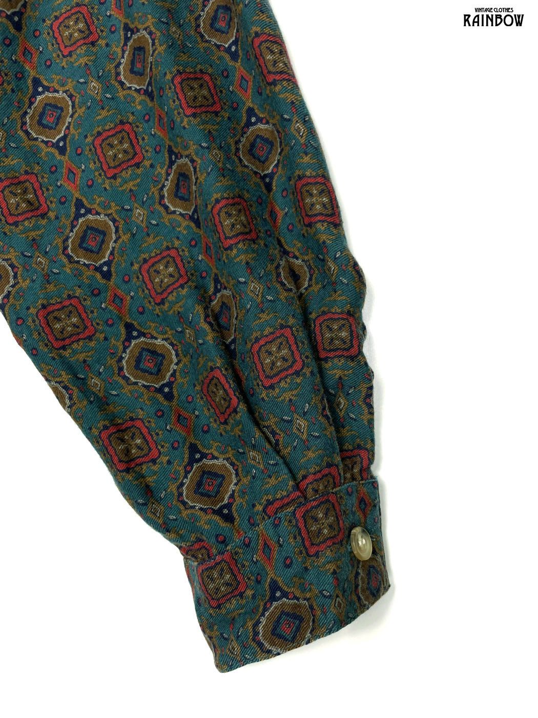 古着 LAND S END ランズエンド 総柄 ロング丈 長袖 ワンピース 緑 otu 2509032