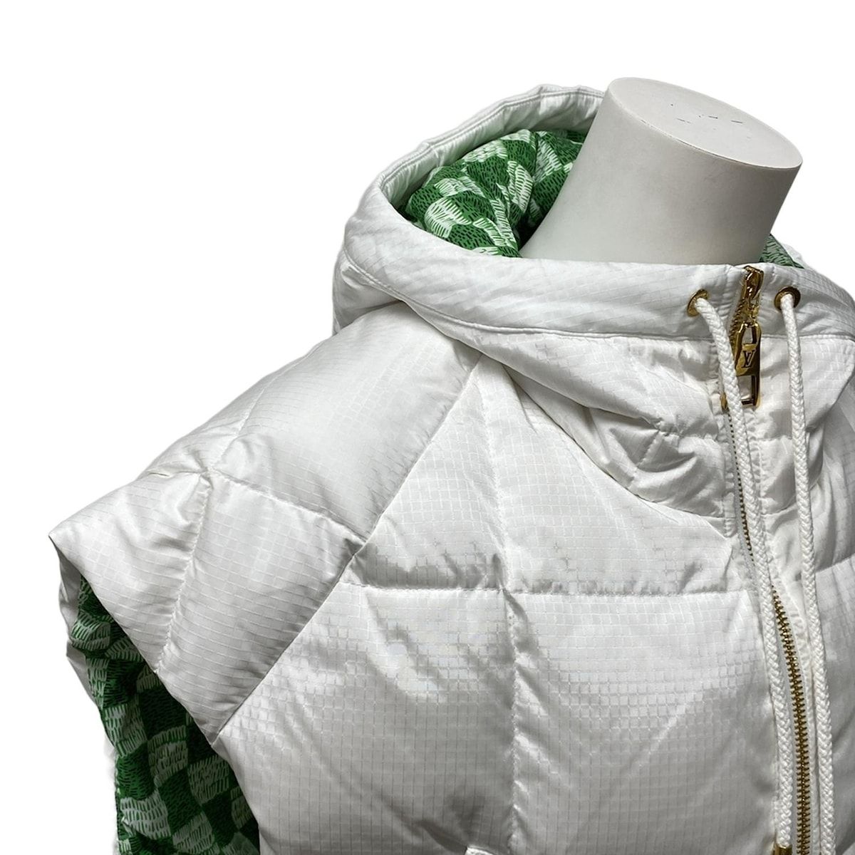 LOUIS VUITTON ルイヴィトン ダウンベスト サイズ36 S レディース LVマッチ オープンアームジャケット 白×グリーン×黒