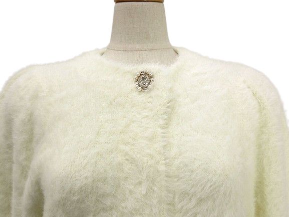 ルルウィルビー Loulou Willoughby ファーボレロカーディガン ニット 2 アイボリー シャギー トップス ビジュー