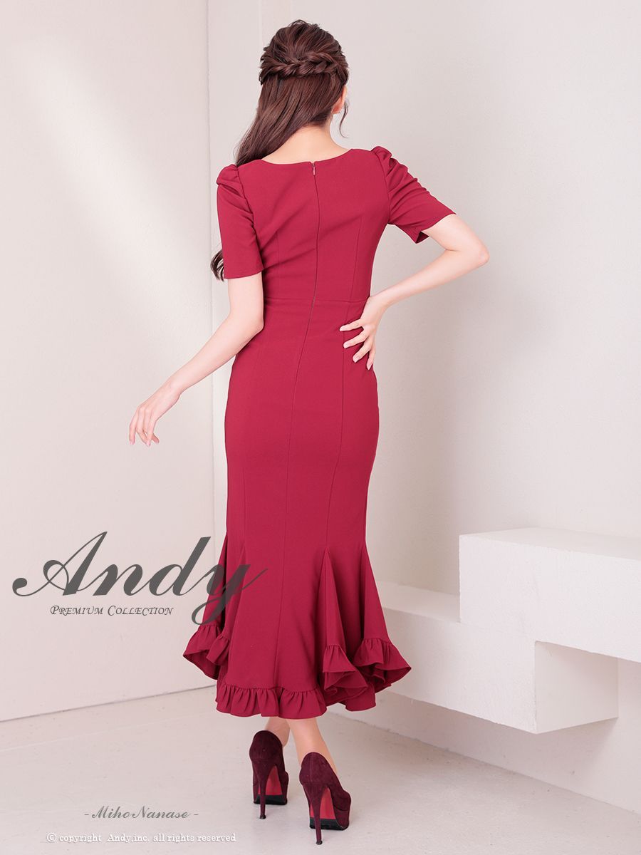 ワインレッドS OF 05 ON 2918-W-2503 ANDY|アンディ パフスリーブ| 袖あり| バストシアー| 裾フリル| スリット| マーメイド| ミディアムドレス| キャバドレス