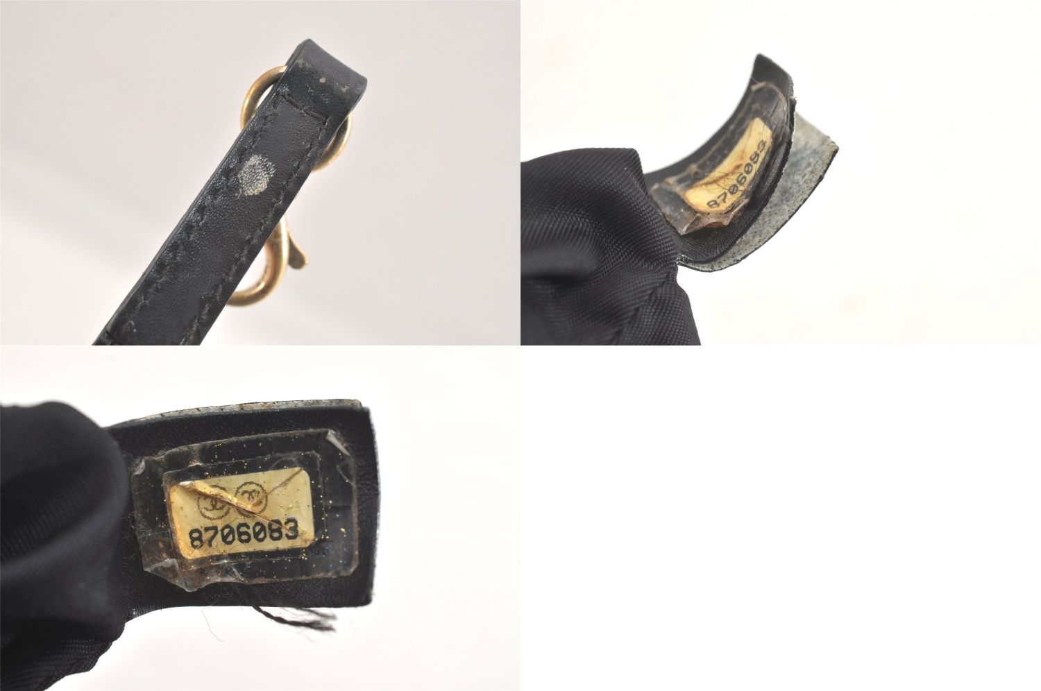 【その他状態】持ち手がほつれて剥がれています。バッグの角が少し破れています。外側の生地の隙間から粉が噴き出しています。内側のタグが剥がれています。
